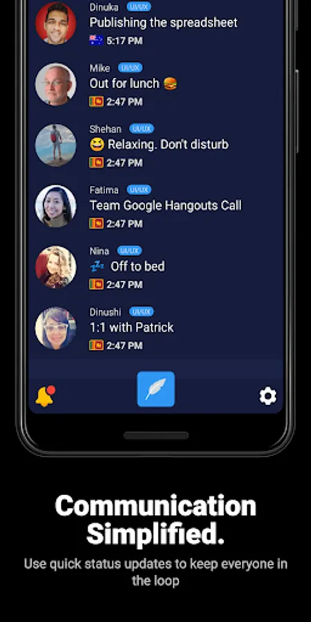 Status simplifies team communication by boiling down communication to simple status updates between team members.