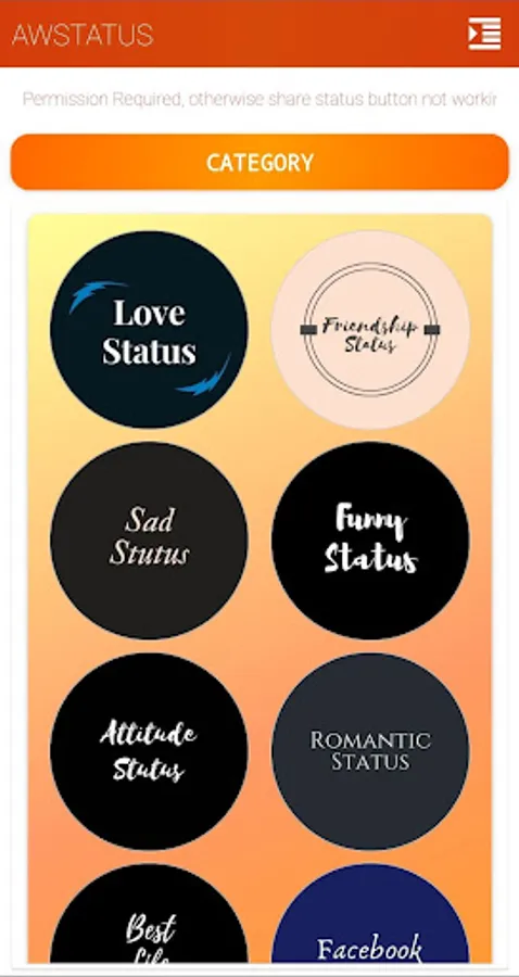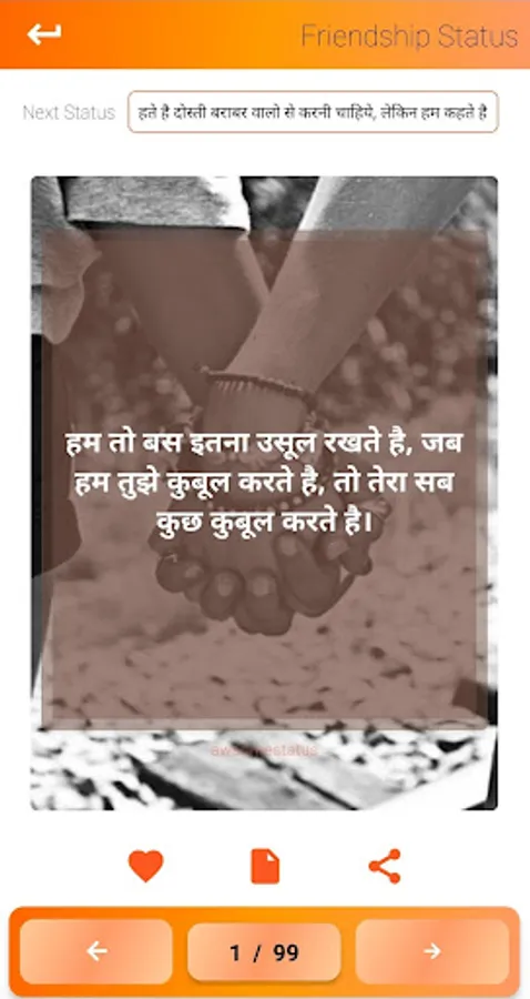 -- Pretty easy to use interface just click next and previous to read the best status and easily set it as your status in WhatsApp or FB.