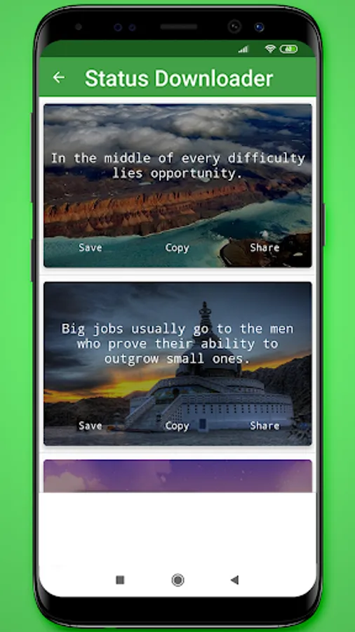 The application also contains ready-made inspiration image status with inspiration quotes. So, you can download inspirational quotes and set as a status on social apps profile.