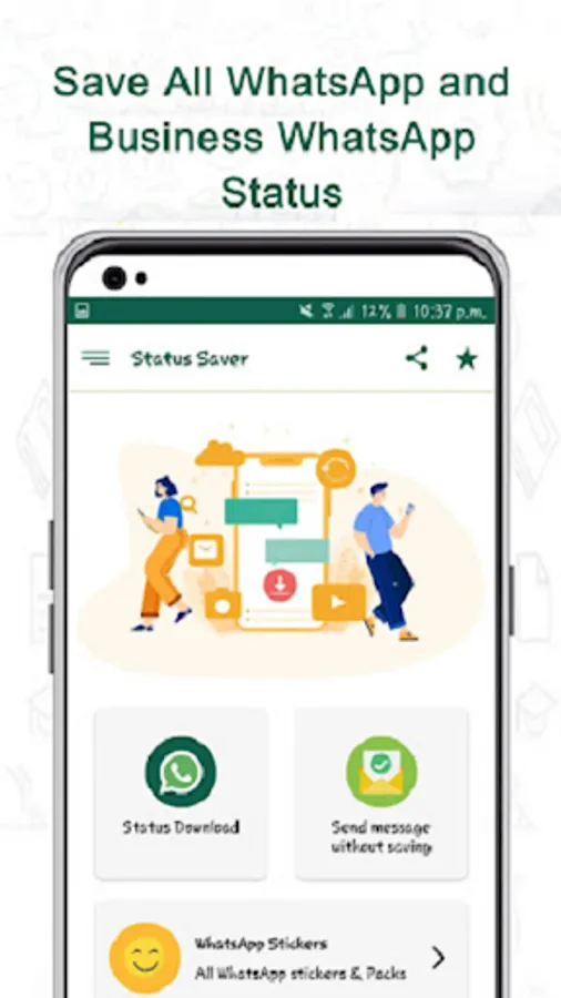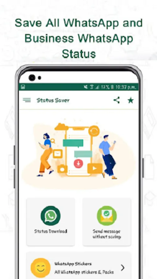 Sticker is an amazing sticker app feature in status saver that consists of a large collection of chat stickers, funny stickers and smileys for entertainment. While chatting with your friends you can use the sticker maker.