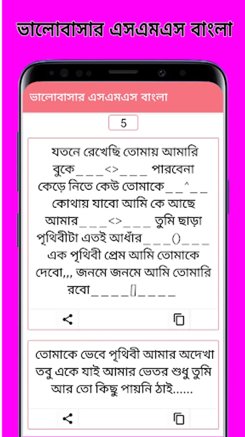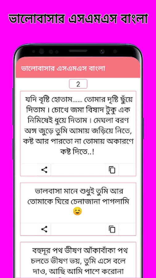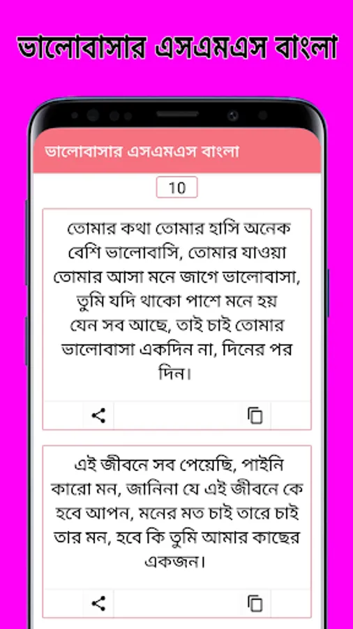 আমরা একমাত্র মনের মানুষকেই মনের সকল আবেগ ভালোবাসা মিশানো কথাগুলো বলতে চাই। কিন্তু অনেক সময় কি বলবো বুঝে উঠতে পারি না। এই কারণেই শুধু আপনারই জন্য এই ভালোবাসার এসএমএস বাংলা App টি । আমার লেখা গুলো পছন্দ হলে অবশ্যই আপনার মনের মানুষকে মেসেজগুলো উপহার দেবেন।