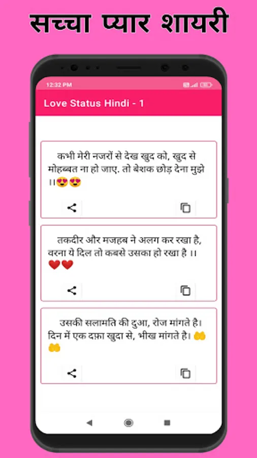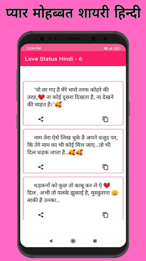 This app gives you the best Love Status in Hindi 2024 प्यार मोहब्बत शायरी.