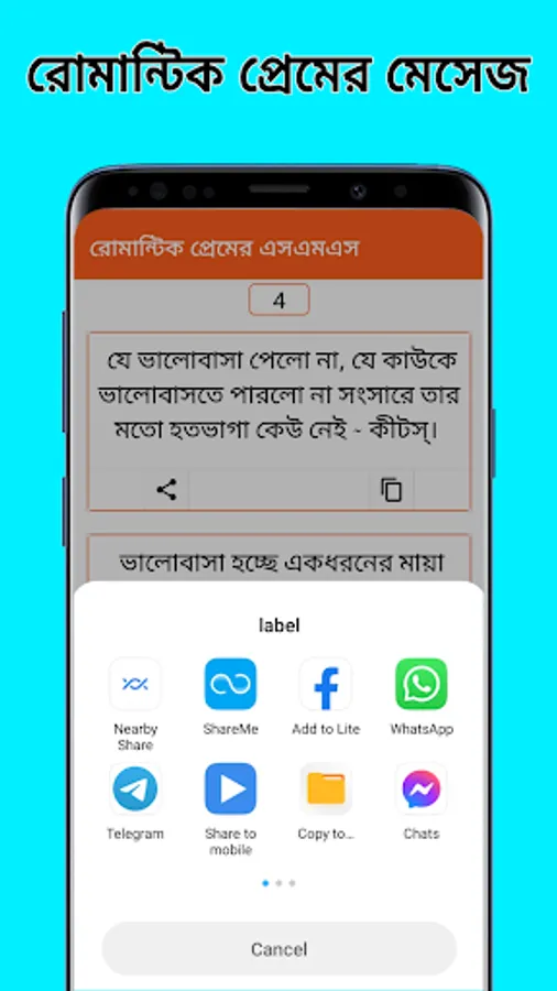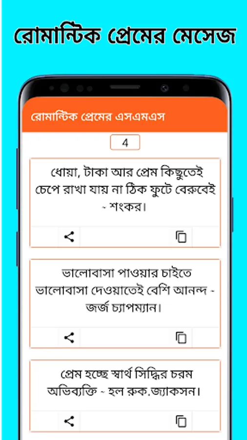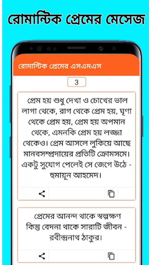 সেই আগেকার দিনে মানুষ তাদের প্রেমের অনুভূতি ব্যাক্ত করতে চিঠি লিখত তাদের প্রেমিক/প্রেমিকার কাছে। কিন্তু কালের বিবর্তনে বিবর্তন ঘটেছে প্রেমেরও৷ এখন মানুষ আর চিঠি লিখে না, এখন প্রেমের অনুভূতি ব্যাক্ত করে sms এর মাধ্যমে। আজকে তাই আপনাদের জন্য রোমান্টিক প্রেমের এসএমএস App টি , রোমান্টিক প্রেমের এসএমএস App টির মাধ্যমে আপনি আপনার প্রিয় মানুষটিকে নিজের প্রেমানুভুতি ব্যাক্ত করতে পারবেন।