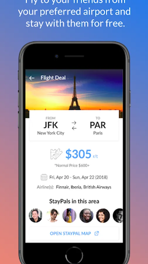 Planning a group trip? Send invites to your friends to be staypals so they can see cheap flights deals too, and share your friends around the world with each other.