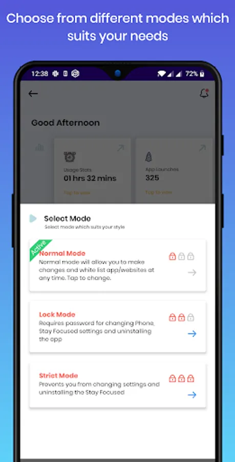 ✔️ Activate Lock Mode to lock access to Stay Focused
