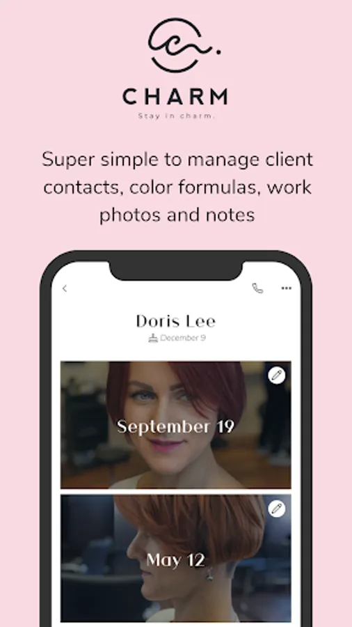 Staying organized for a busy stylist is hard, but not anymore! With Charm, you can manage your client information, hair color formulas, hairstyle photos, and more - all in one place. This App saves you time behind the chair and ensures all your beauty salon customers are happy. Stop wasting time with paper index cards or unfit appointment booking Apps. Try out Charm App today for free!