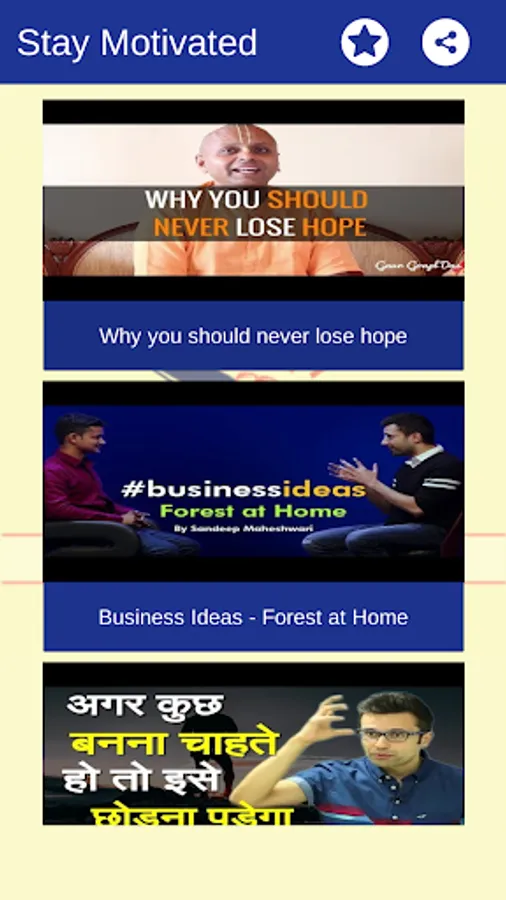 The application has also a section which will provide videos from the motivational speakers like Sandeep Maheshwari, Kajal Oza, Sanjay Raval, Gaur Gopal das, etc.