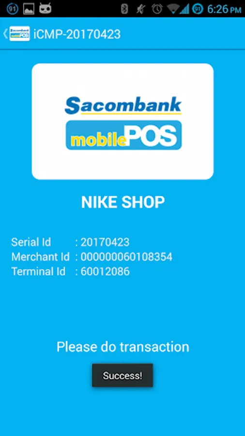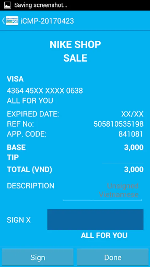Sacombank mobilePOS is an application of card acceptance which is similar to Point of Sales. Sacombank mobilePOS is operated based on a card acceptance device that is integrated via Bluetooth connection and a mobile equipment (smartphone or tablet) connected Internet (3G/Wifi). Cardholders make transactions similar to swipe card on the POS and the signature will be implemented on the mobile equipment. The receipt shall be sent directly to Cardholder’s email.