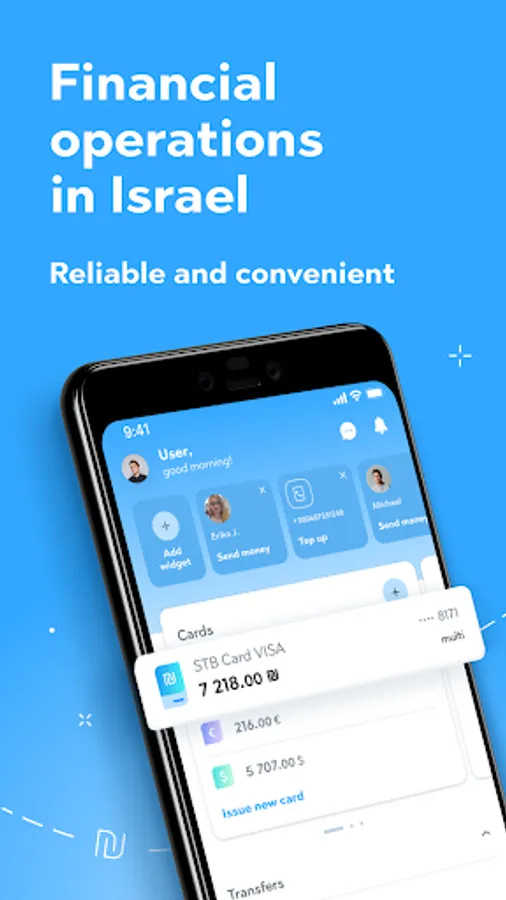 STB Union is the ultimate financial app for your every day money management needs. It offers a multicurrency account and STB Visa card, a worldwide money transfer app, 24/7 currency exchange, and the ability to receive money transfers directly to the STB Visa card. With STB Union, you can effortlessly send and receive money from Israel and abroad, make payments both offline and online, exchange currency at a favorable rate, and track detailed expenses and transactions.