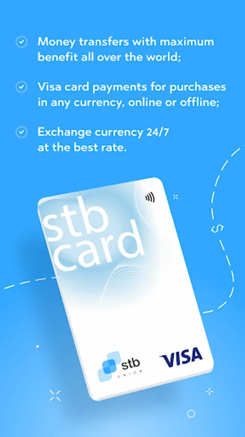Additionally one of the unique features of STB Union is the ability to receive money transfers directly to your STB Visa card. This means you can easily receive payments from abroad, without any hassle.
