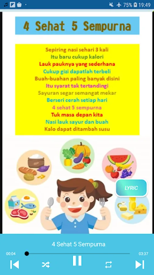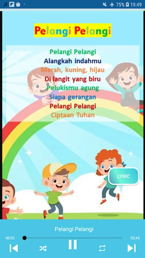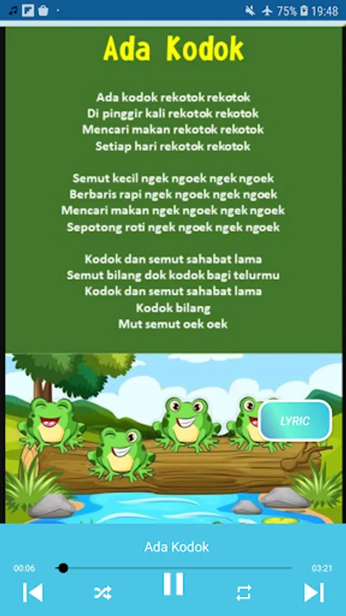 This application contains a collection of popular Indonesian children's songs, Indonesian children's songs which are usually sung in PAUD and kindergarten. There are dozens of Indonesian children's songs in one free application. Just download it once and don't need an internet connection to play the song.