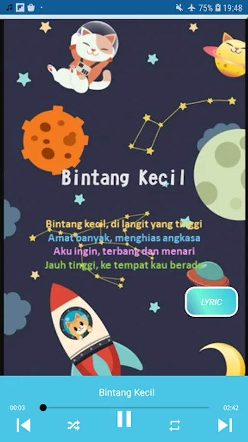 The copyright of all songs and lyrics in this application belongs to the creators, musicians and music labels concerned. If you are the copyright holder of the songs in this application and don't want your song to be displayed, please contact us via the developer email and tell us about your ownership status for the song. We will remove the song or lyrics immediately.