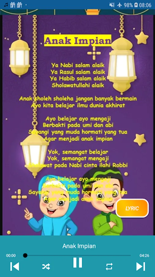 This complete offline Aishwa Children's Sholawat song collection application contains various types of sholawat readings to the Prophet Muhammad which are beautifully sung.