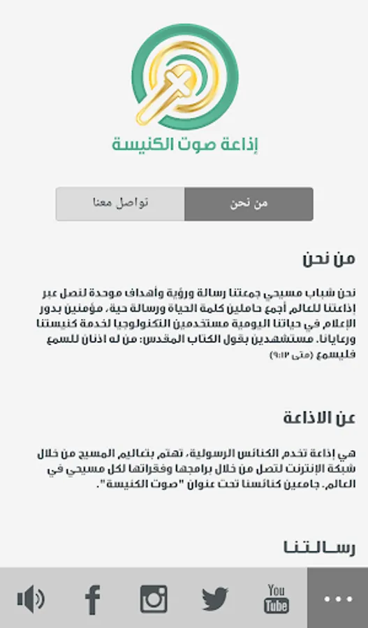 هي إذاعة تخدم الكنائس الرسولية، تهتم بتعاليم المسيح من خلال شبكة الإنترنت لتصل من خلال برامجها وفقراتها لكل مسيحي في العالم. جامعين كنائسنا تحت عنوان "صوت الكنيسة".