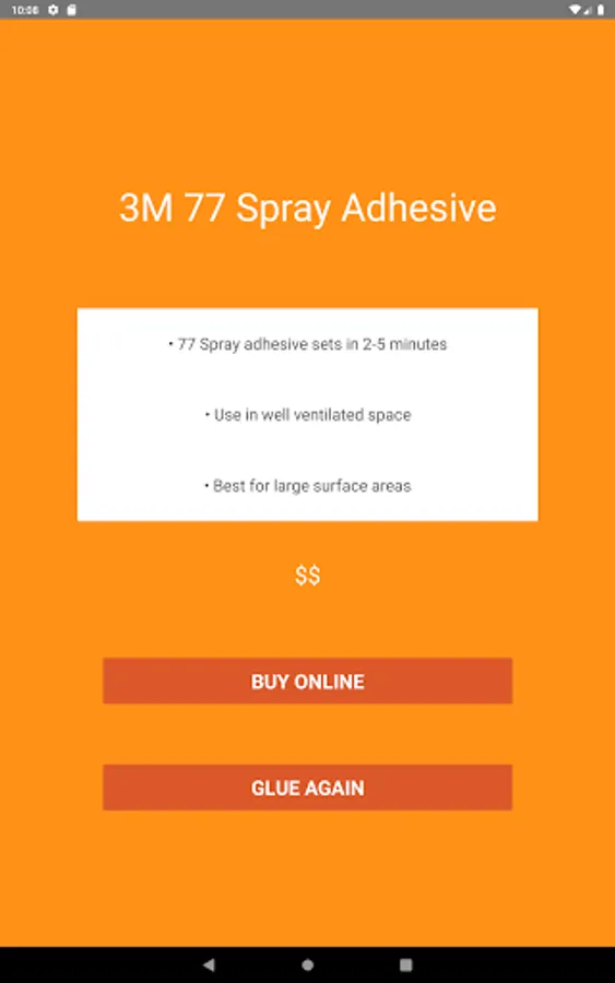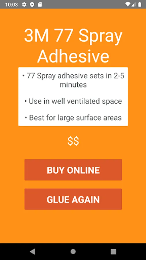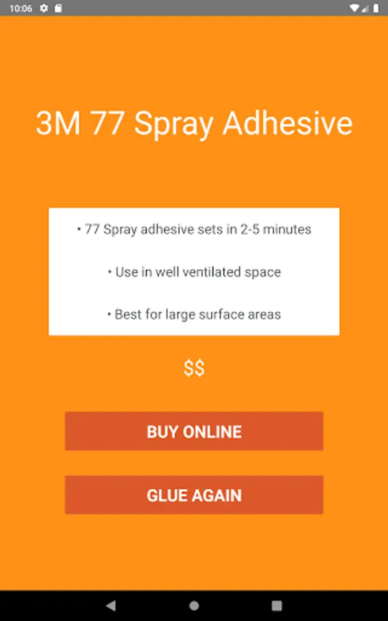 STCKY features easy to use material drop down menus to specify your materials to be glued. Once you select what you are using, and the size of your gluing area, STCKY does the rest! Just hit the glue it button, and STCKY will make the glue recommendation. From the recommendation screen you will also find links to online purchasing options.