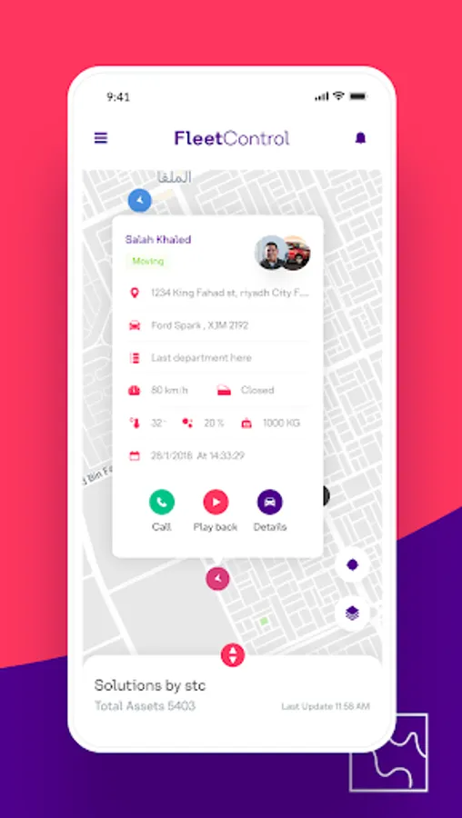 My Fleet app is designed to help organizations manage their fleet operation, that includes real-time location tracking, speed tracking and alert notifications. The app support both English and Arabic language.
