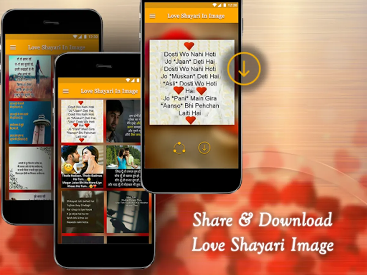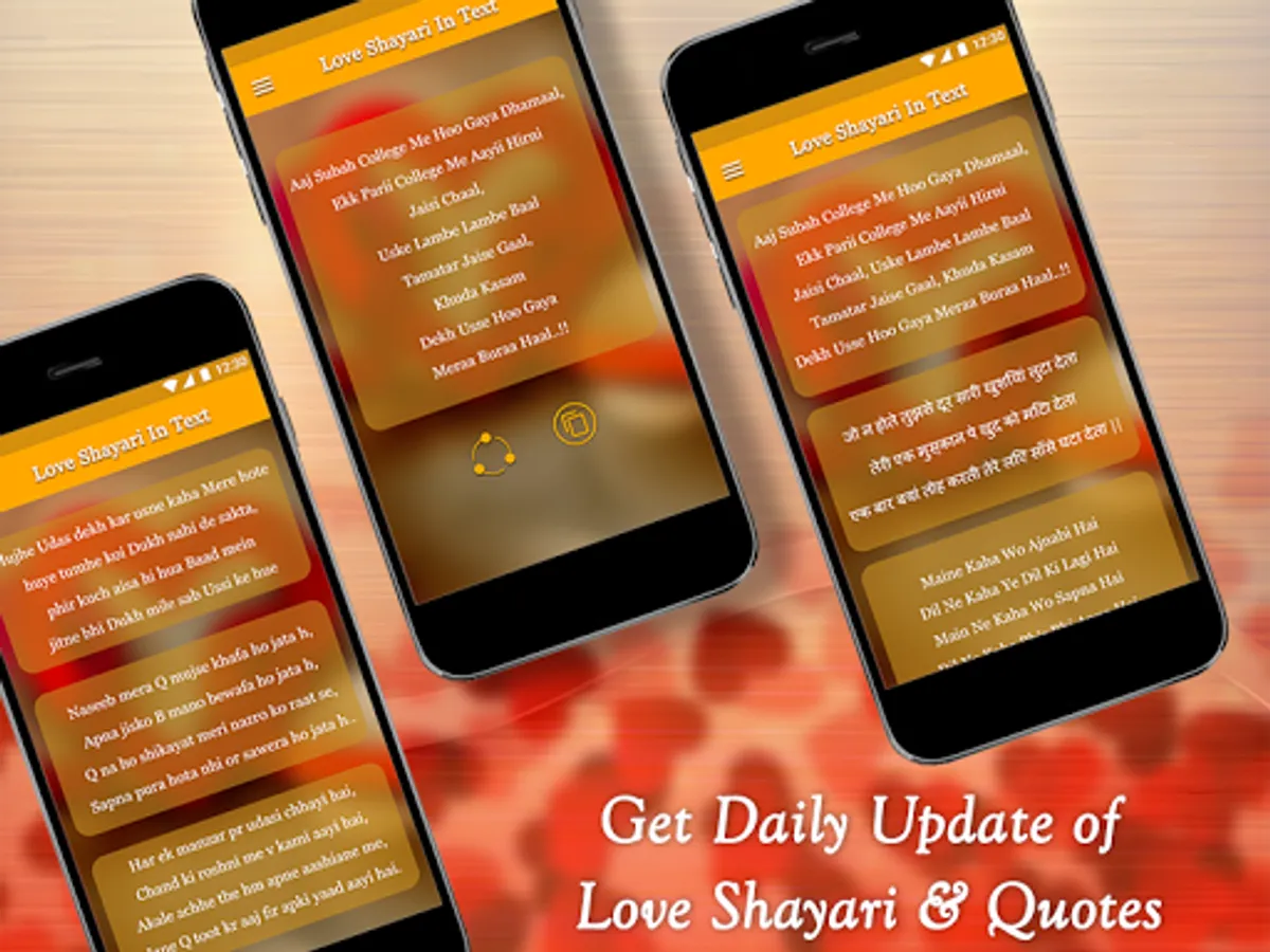 Download and share free Love Shayari app and wishes on Whatsapp, Facebook, Twitter and show friends and family that you care for them with beautiful wishes and messages!