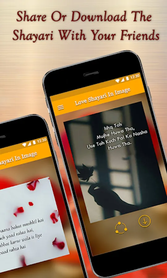 Love Shayari application Contain brings best collection of Hindi and English Shayari and Images.