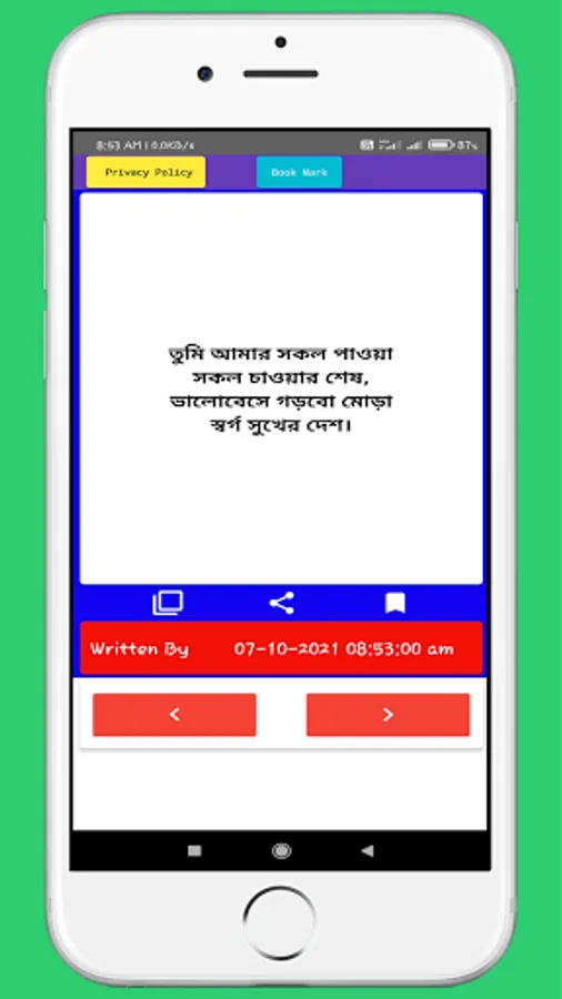 This app for bengoli languge love heart broken sad mind blowing wonderful sheyari collection By using this app you get latest good morning good night bengali sms for status all social media .
