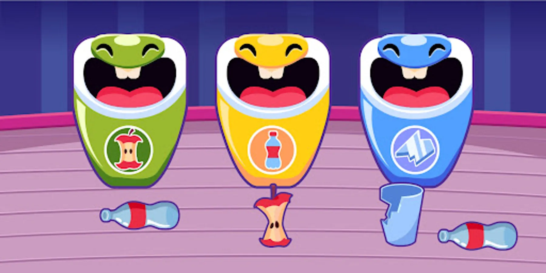 Recycling area: Playing pony games children can learn that we need to sort the trash before recycling to keep nature in harmony.