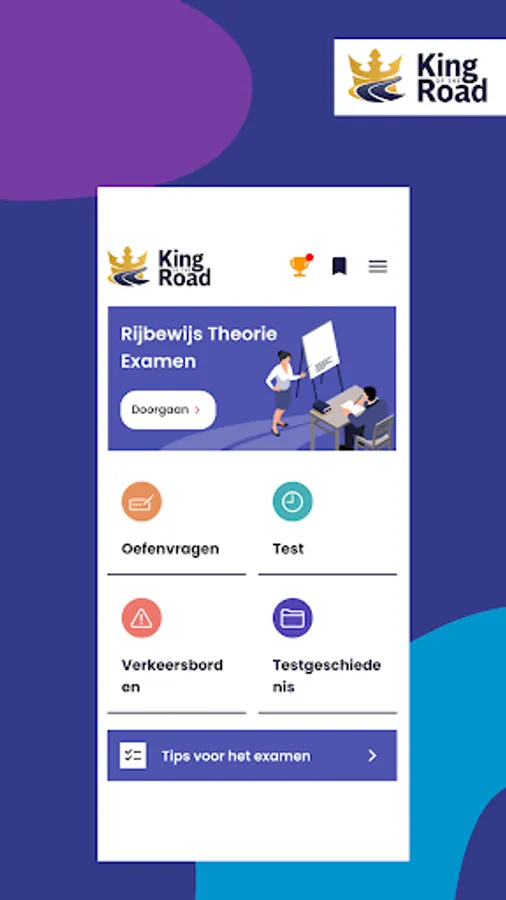 A fun way to prepare yourself as well as possible: An app with practice questions, a test exam and online videos with all the information (in Dutch) you need to pass the CBR driving test. Passing your driving test has never been so much fun!