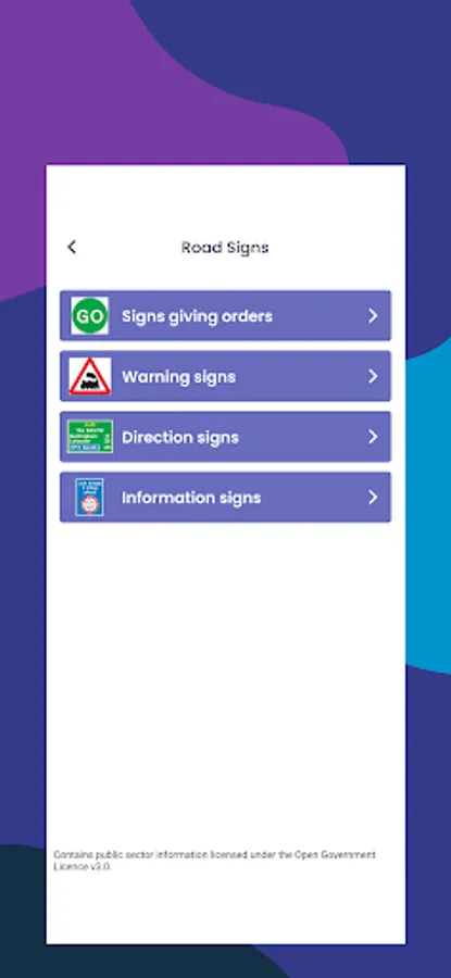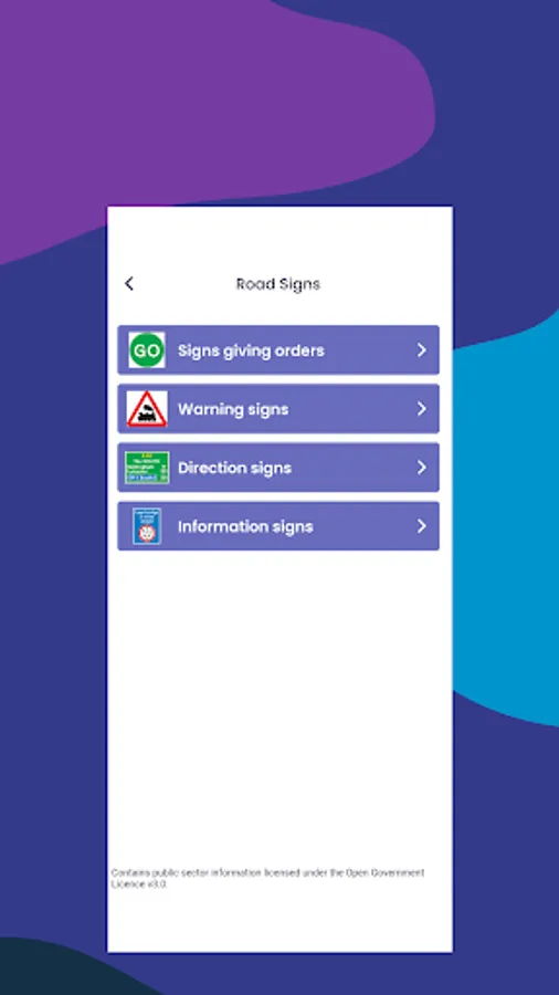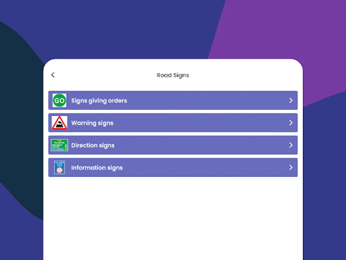 • A full list of all relevant local and national road signs.