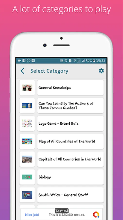Play and get knowledge on many categories and share your results. In this App you will find many categories like