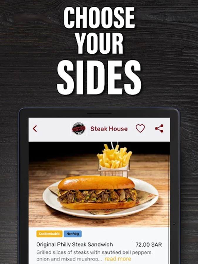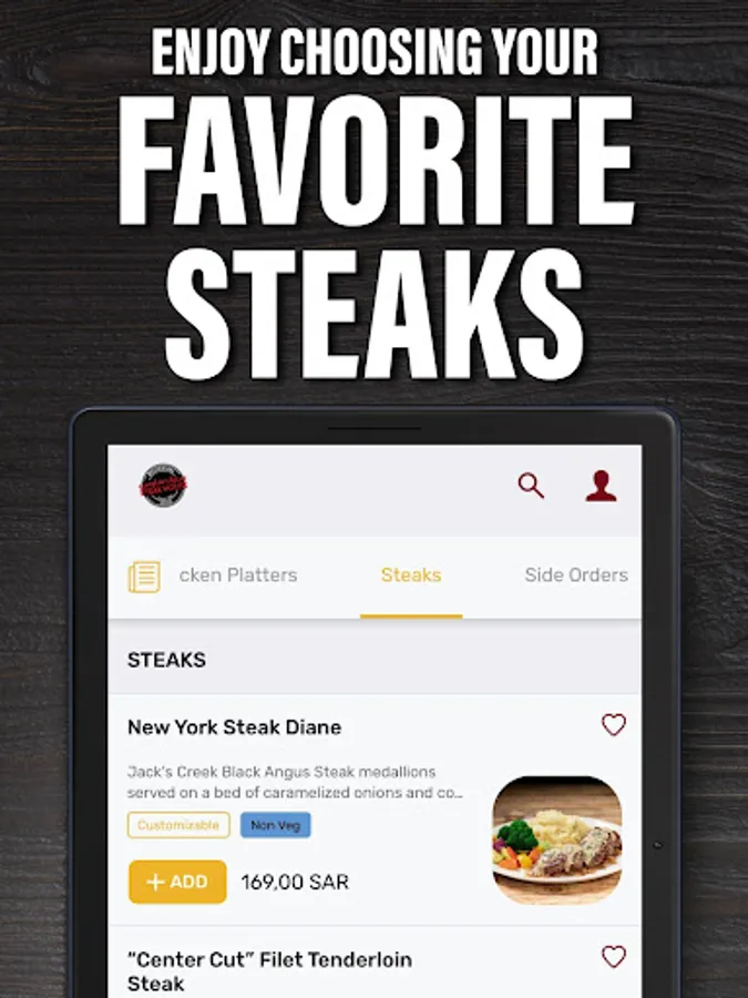 Welcome to the new Steak House KSA Mobile App! Now you can conveniently order your favorite Steak House menu items for pick up or safe delivery! It allows you to view the complete menu, easily choose your sides, add-ons, and even send your special instructions to ensure that you receive your meal the way you want it. It also provides you with complete details about Steak House restaurants nearest you: their locations, contact numbers, including ongoing promotions. Registration is fast and easy!