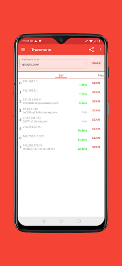 • Traceroute: Track the path your packets take and geo-locate IPs to visualize them on a map.