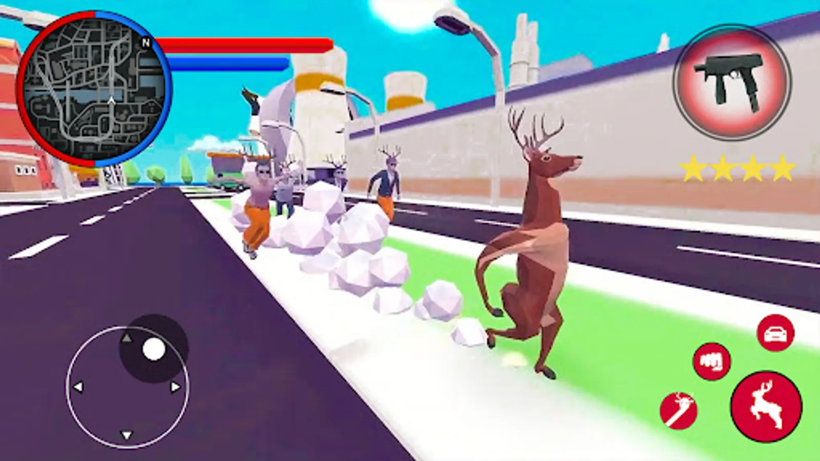 as a Deeer take control of city cars from sleek sports cars speed and agility. Tear through the streets, escape over obstacles and fight cops, using all weapons.