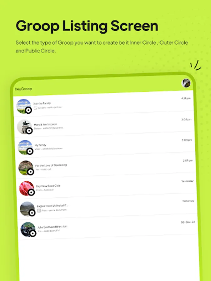 We engineered heyGroop to be completely focused on Groop communication and sharing so you can easily organize all the Groops in your life, for friends, family, school and work.