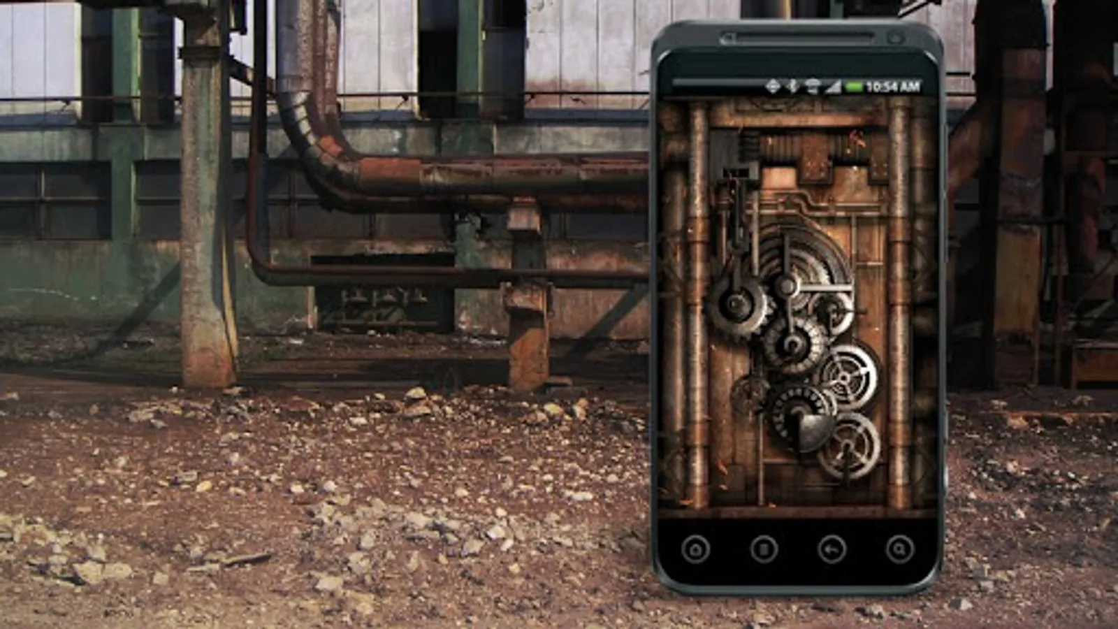 Steampunk Live wallpaper - Clockwork Gears Rotate and steam billows from the pipes. Now with steam & gear sounds!