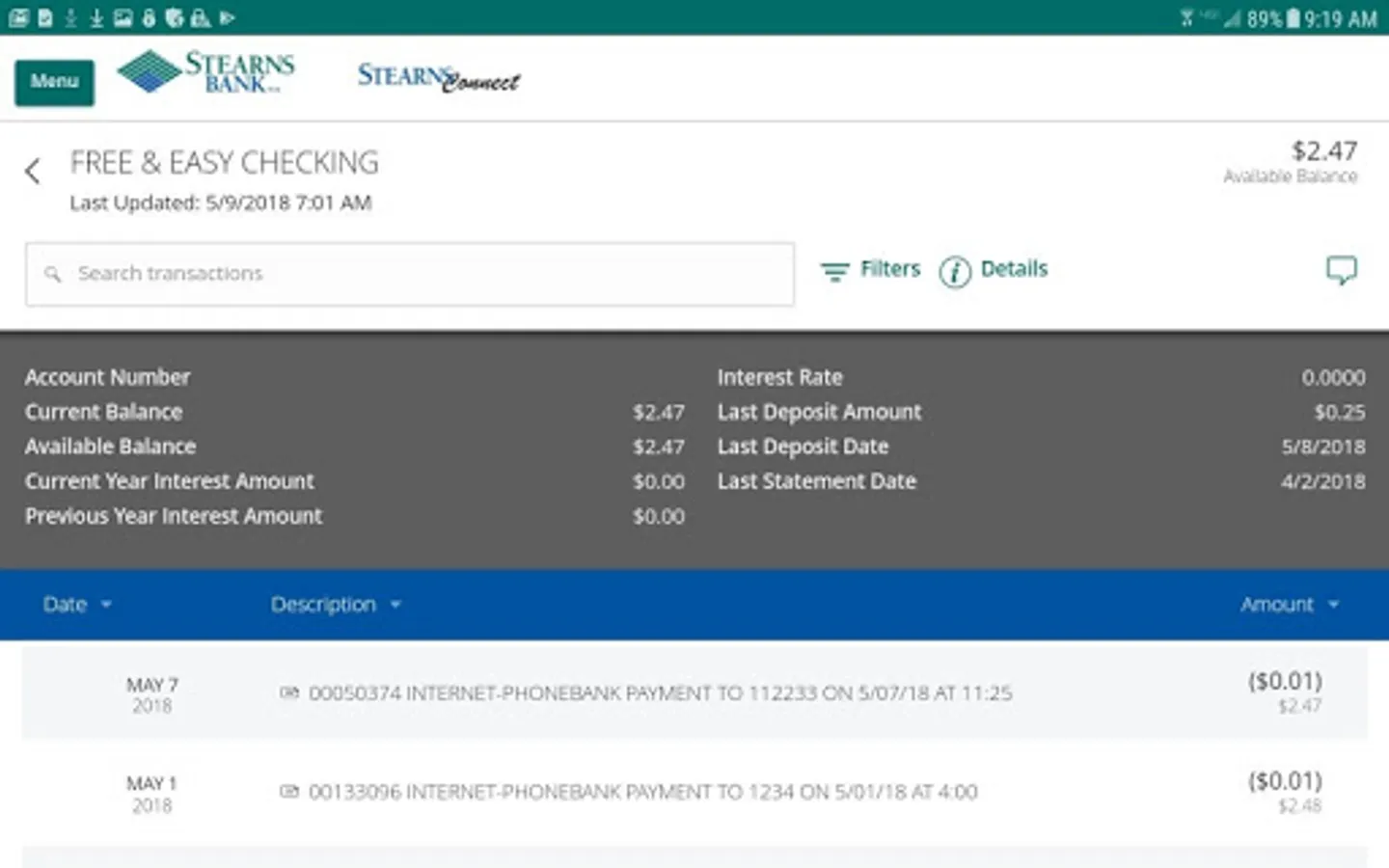 Mobile Banking by Stearns Bank allows you to bank from anywhere. Our app is fast, secure, and free. It offers quick access for managing your financial services accounts. Check your balances, view check images and statements, deposit checks*, pay bills, and transfer money are just a few of its capabilities. Log in now to link all of your financial services accounts today!