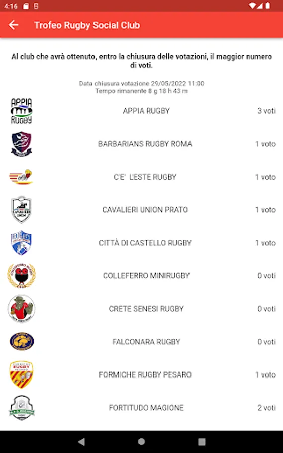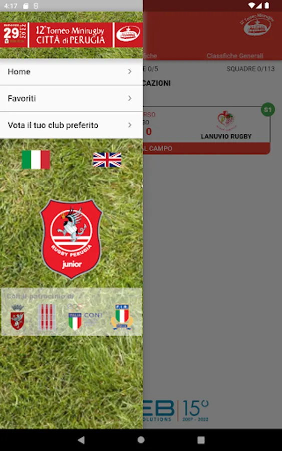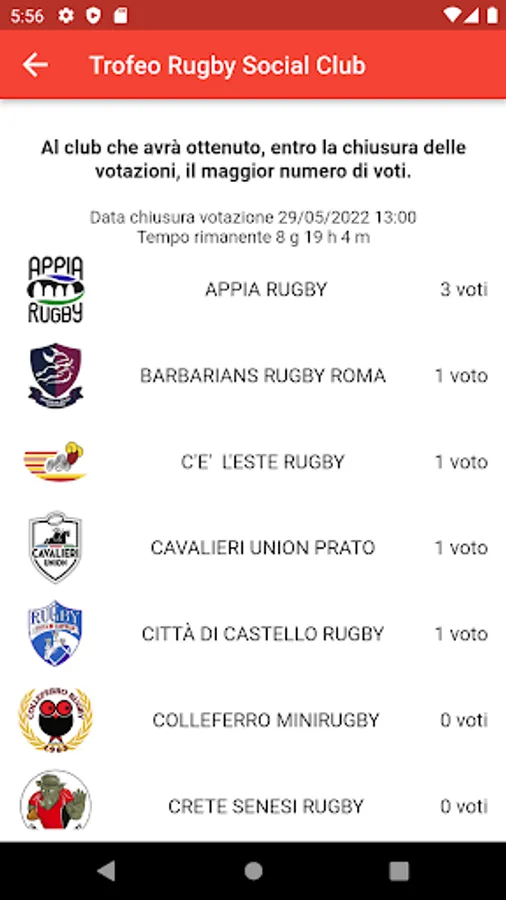 The app allows you to keep track of the results, find the playing field and assign the coveted Rugby Social Club Trophy.