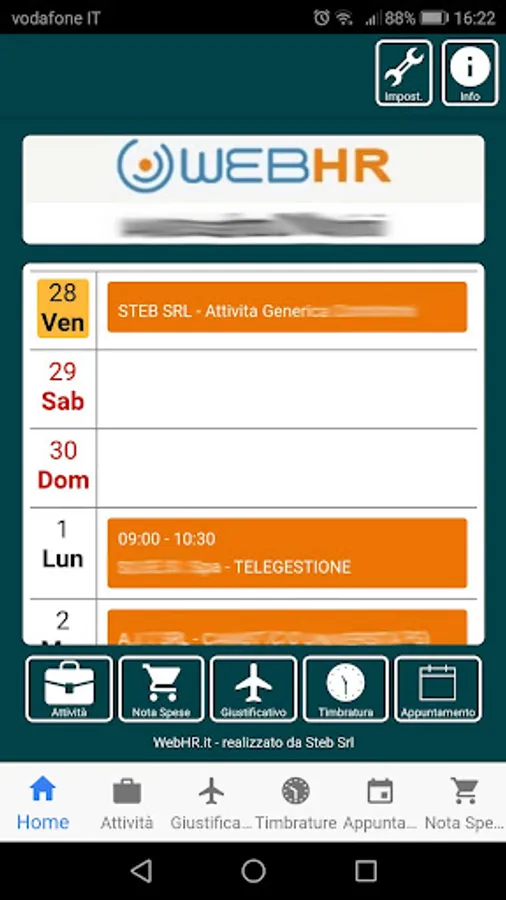 WebHR is the support app for the WebHR website for managing staff from smartphones and tablets. The app will allow users (especially on the road) to insert justifications, expense reports and stamps located through gps and manage appointments and activities, sharing information in real time with the administration from anywhere and at any time.