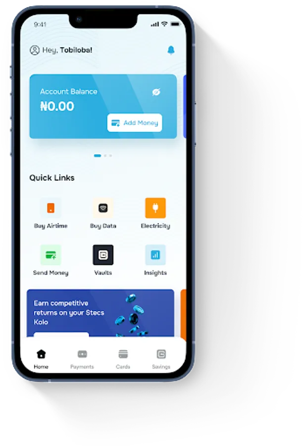 Stecs is an ethical mobile money app that lets you manage all your finances in just one app. Swift account opening process, money management tools, cards services, investments and credit products are some of the things you stand to gain by opening an account with us.