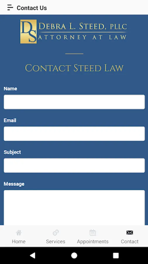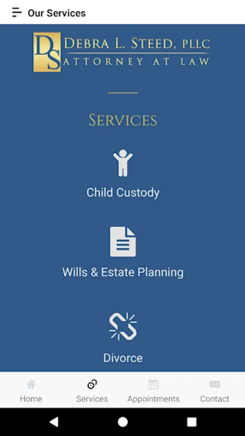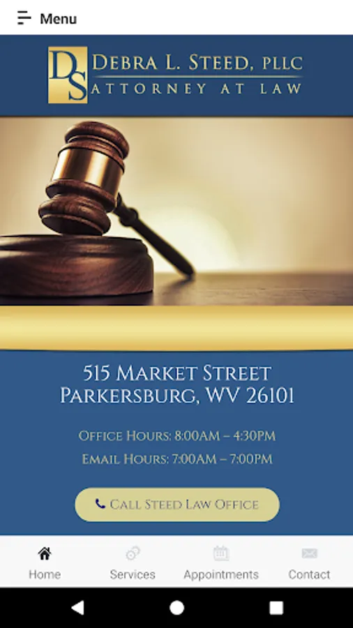 Welcome to the Steed Law Office mobile app. This app allows individuals to communicate electronically with Attorney Debra L. Steed, PLLC, and to schedule appointments for legal services in the Mid-Ohio Valley Region of West Virginia. Attorney Steed is a compassionate and patient lawyer who takes her time to listen to and understand the concerns and problems of her clients, especially those who are trying to handle matters on their own. Her services include: Estate Planning, Family Law & Real Estate Law. Beyond giving legal advice, she is adept at assisting clients with emotional and sensitive issues. She often receives favorable comments regarding her ability to put her clients at ease and alleviate their emotional stress as their cases proceed through the court system. Attorney Debra Steed is a member of the West Virginia State Bar, and is quite familiar with the local courts in the area.