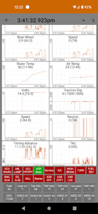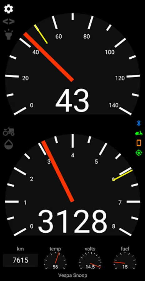 * Dashboard with large speedo and tacho dials and water temperature and battery gauges