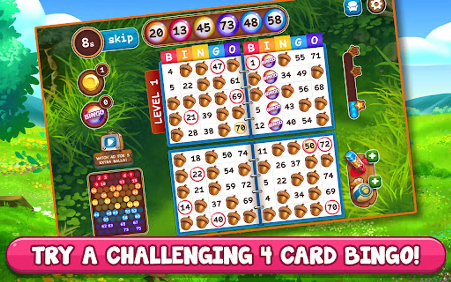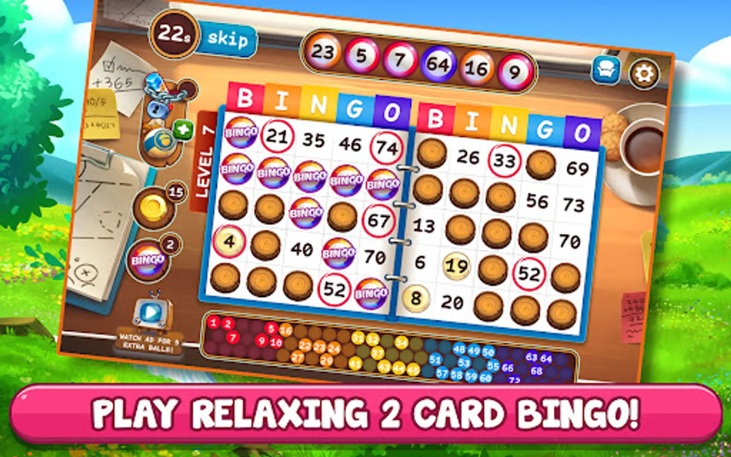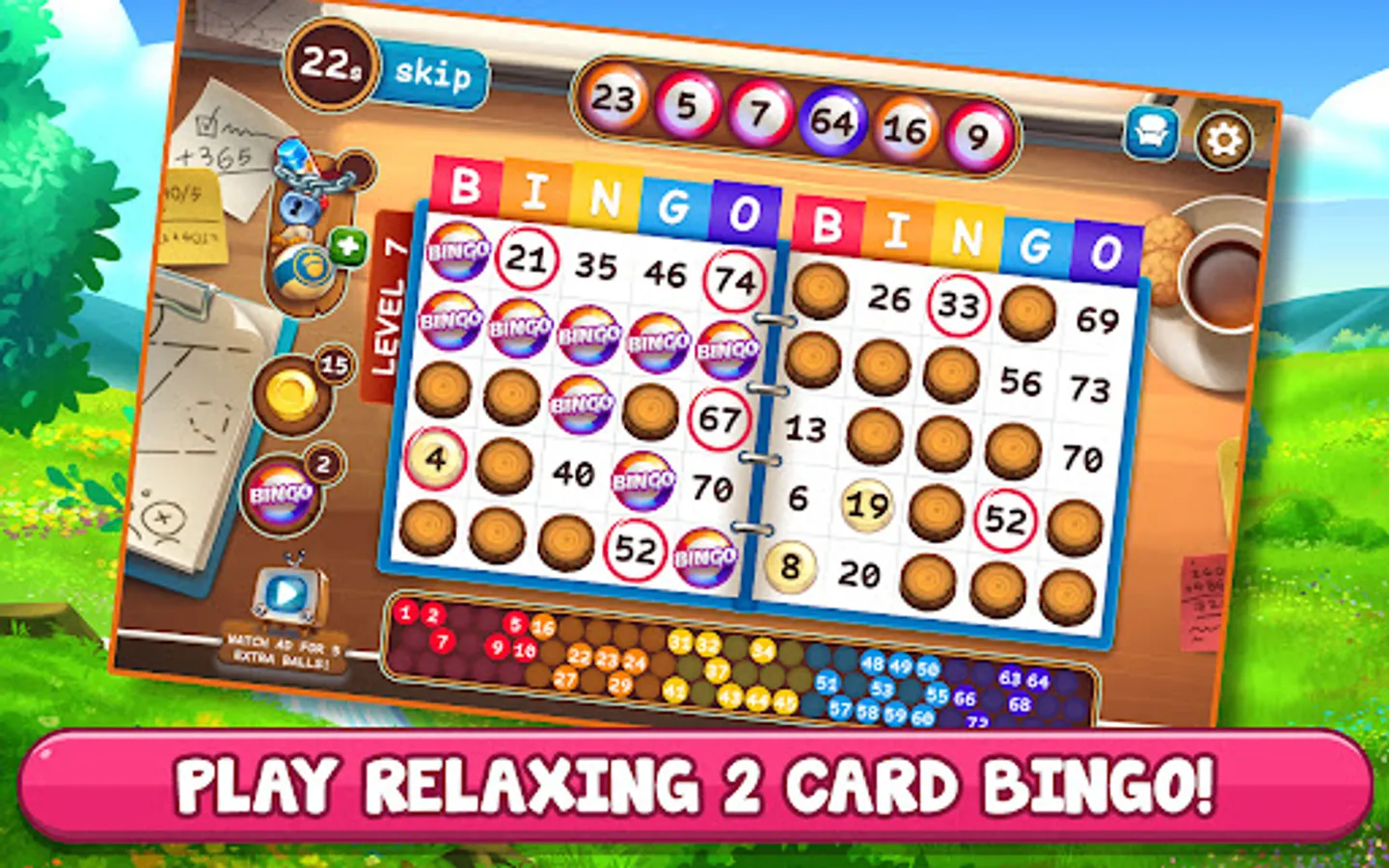 Enjoy this bingo game for free and play offline if you like. Change the call speed and choose between a male or female voiceover. Choose between 2-card bingo or even 4-card bingo! Check out the power-ups and collect fun new daubers. Enjoy this relaxing free bingo game at your own pace.