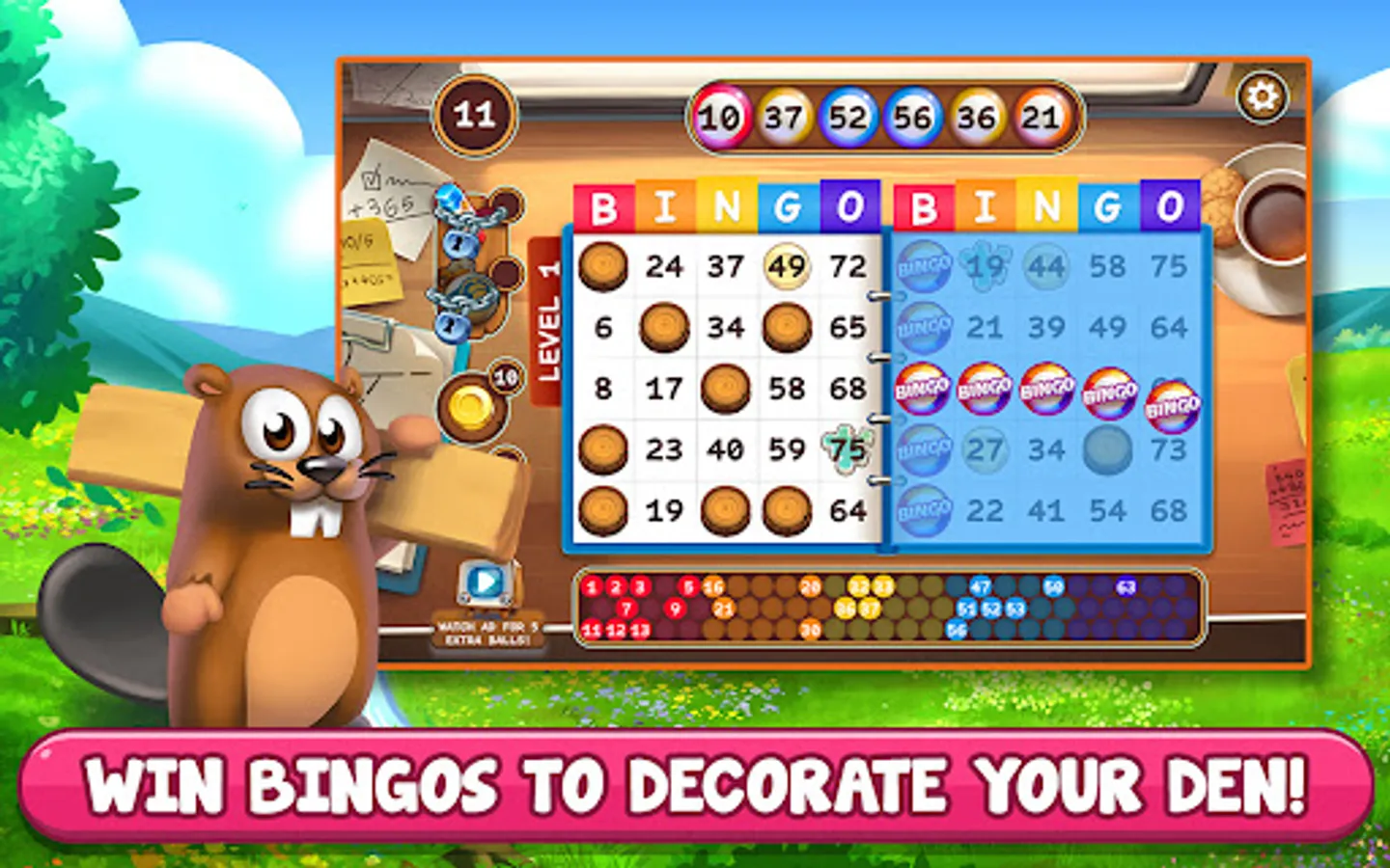 Mansion? Oh yes, this beaver loves playing bingo and won’t accept a modest burrow for a home. He wants to build the biggest dam house ever! Play bingo and help him decorate the living room, kitchen, game room, bedroom, etc…