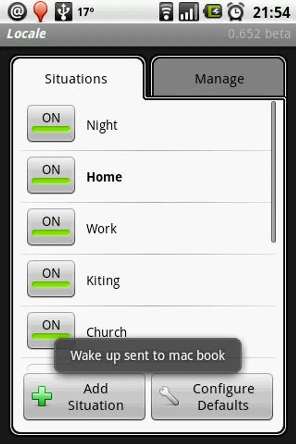 With Locale and the Wake On LAN Plug-in (WOL), your phone can wake up a sleeping computer when you are in a specific situation, for example entering Work.