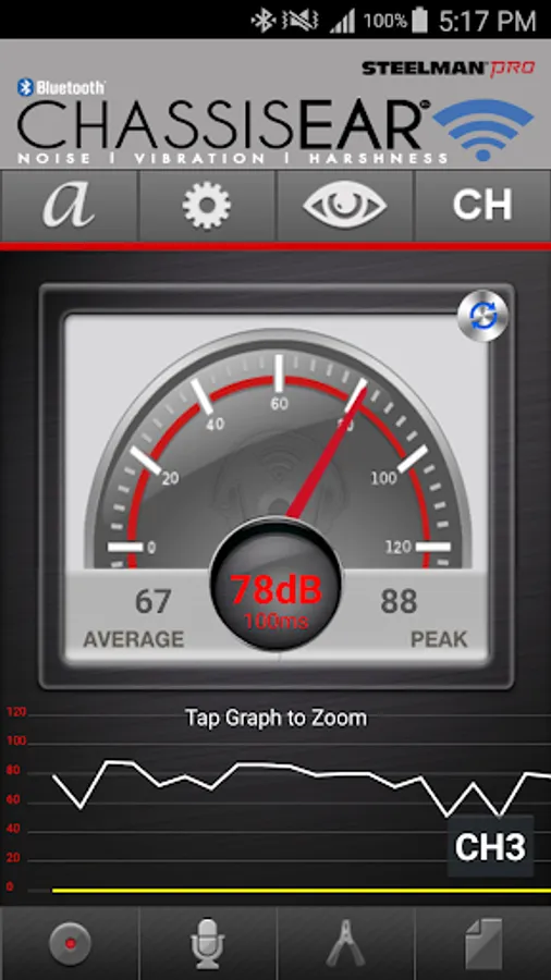 The Steelman Pro Bluetooth ChassisEAR Noise Vibration Harshness Detection app was developed to help assist the service technician in locating and finding defective or worn parts in automobiles, heavy machinery or industrial equipment where vibration, rattles, squeaks and grinding sounds would be associated making the task very difficult or impossible to diagnose.