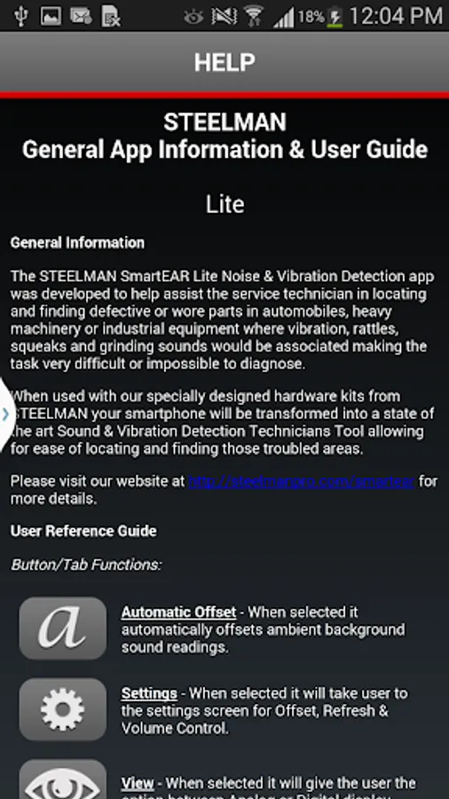 Developed for the service technician in mind the STEELMAN SmartEAR LITE Sound & Vibration Detection app will assist in locating and pinpointing defective or worn parts in automobiles, heavy machinery or industrial equipment. When used to diagnose vibration, rattles, squeaks and grinding sounds, the SmartEAR LITE will simplify the task of locating and pinpointing the troubled area or part with ease.