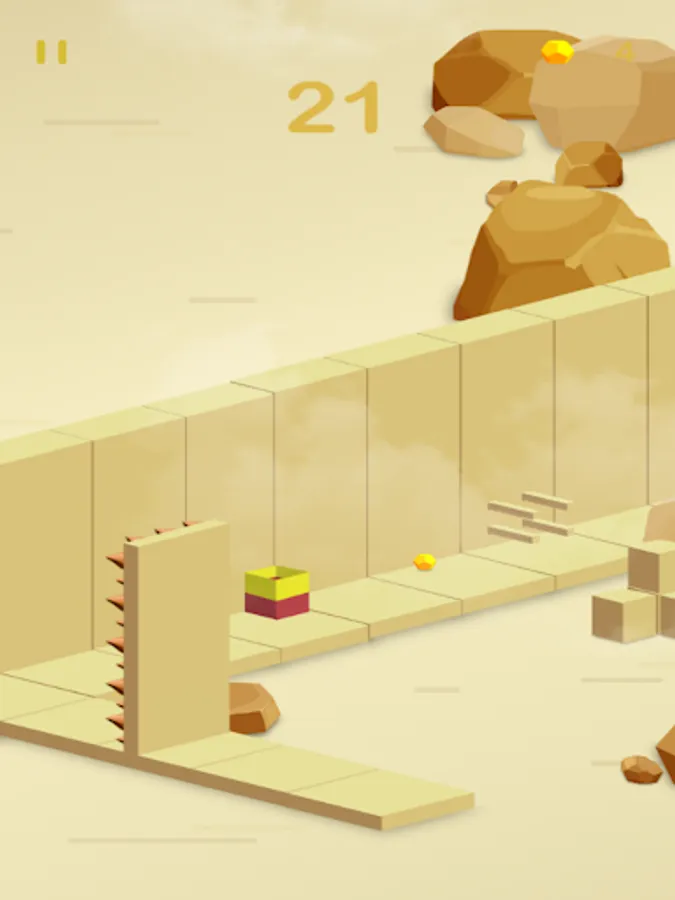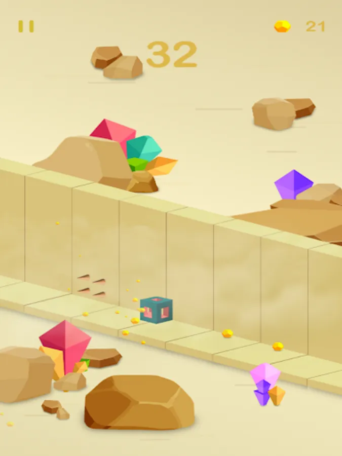 Slow the cube down by tapping and holding the screen to avoid obstacles! How far can you go?