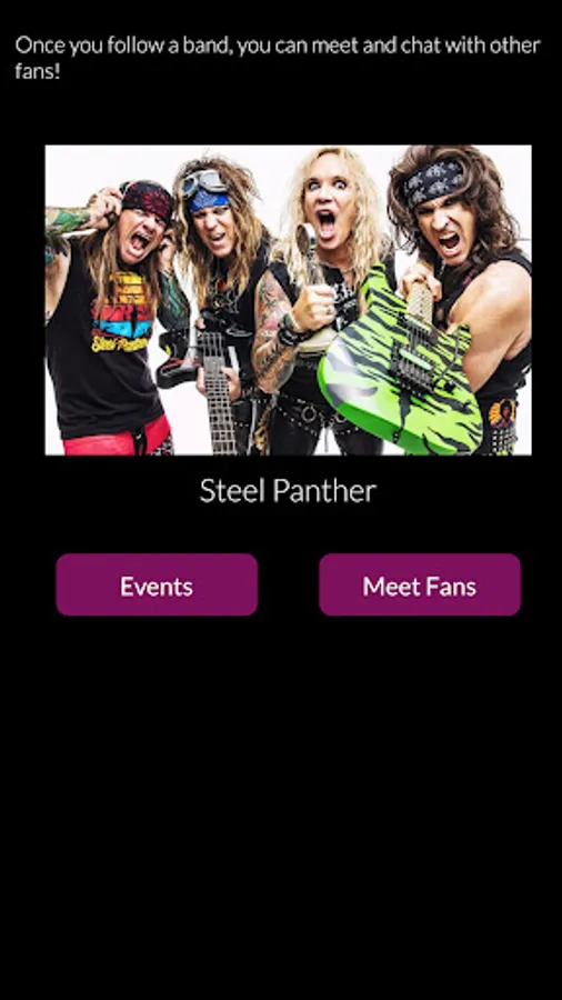 Find new friends and more based on your musical interests. Follow bands and swipe to match with other fans of those bands. Chat with them and see where it goes - maybe even to a concert for that very same band!