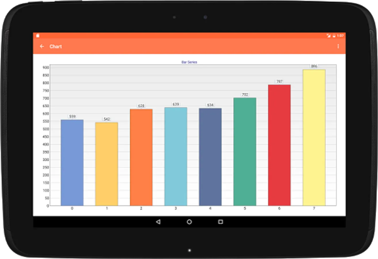 Demo of the TeeChart charting and graphing Java library for Android.