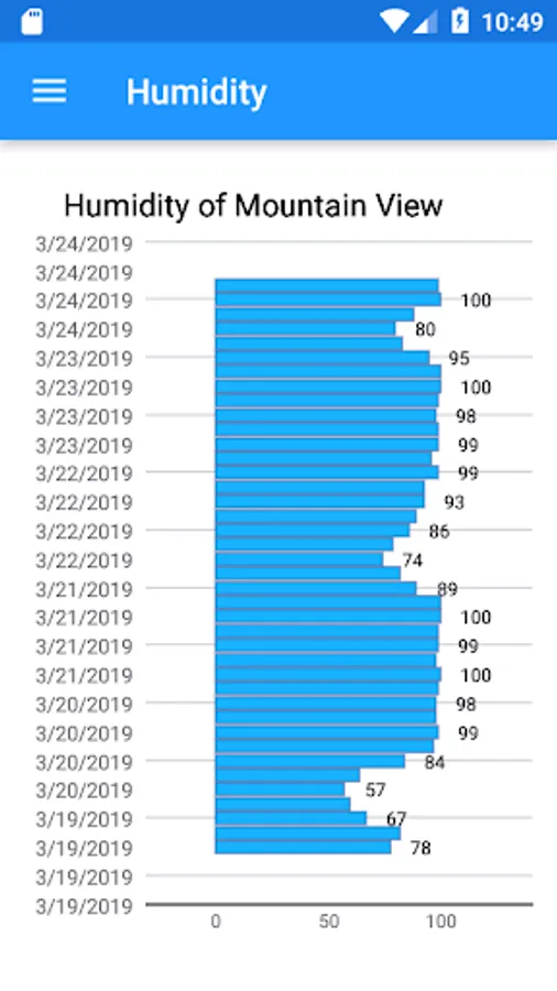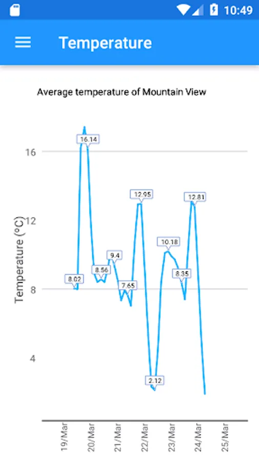Demo show a WeatherApp for Xamarin.Forms using TeeChart libraries. This sample combines TeeChart for .NET CSharp combined with Xamarin.Forms Component library with Xamarin.Forms.