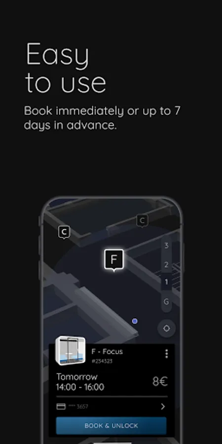 Getting work done, either alone or working together with someone should be as convenient as possible. That’s why we bring the familiar experiences of ride sharing and e-scooters to workspace bookings. You pay conveniently and securely with your credit card and now have control over the electric lock.