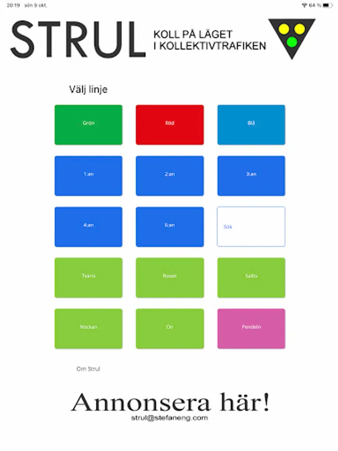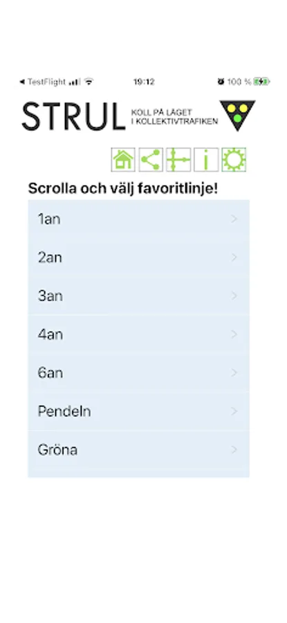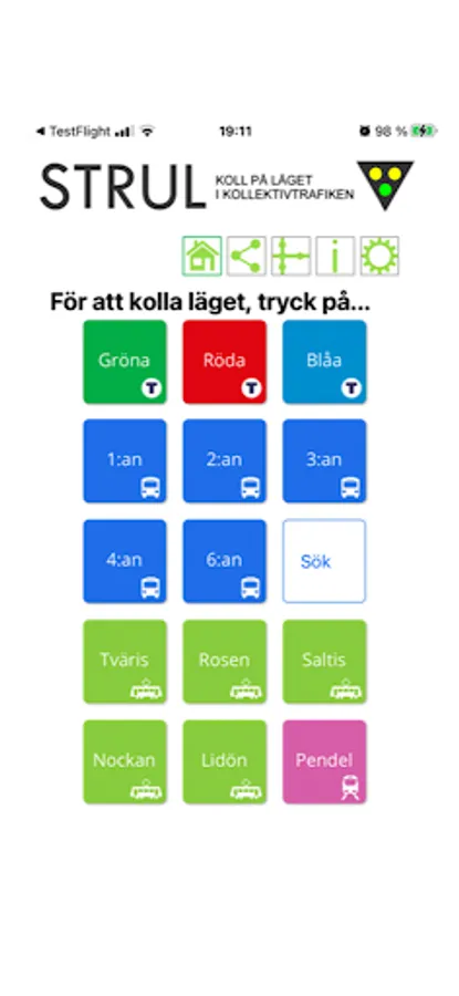 In the search box, type a line number in Stockholm's bus network. 57, 602 or why in 812? The answer appears bums. STRUL is so easy to use, ready buttons for the standard lines in Stan. But you can also set your favorite line as default. Then just open STRUL and you will get the answer. It couldn't be much simpler.