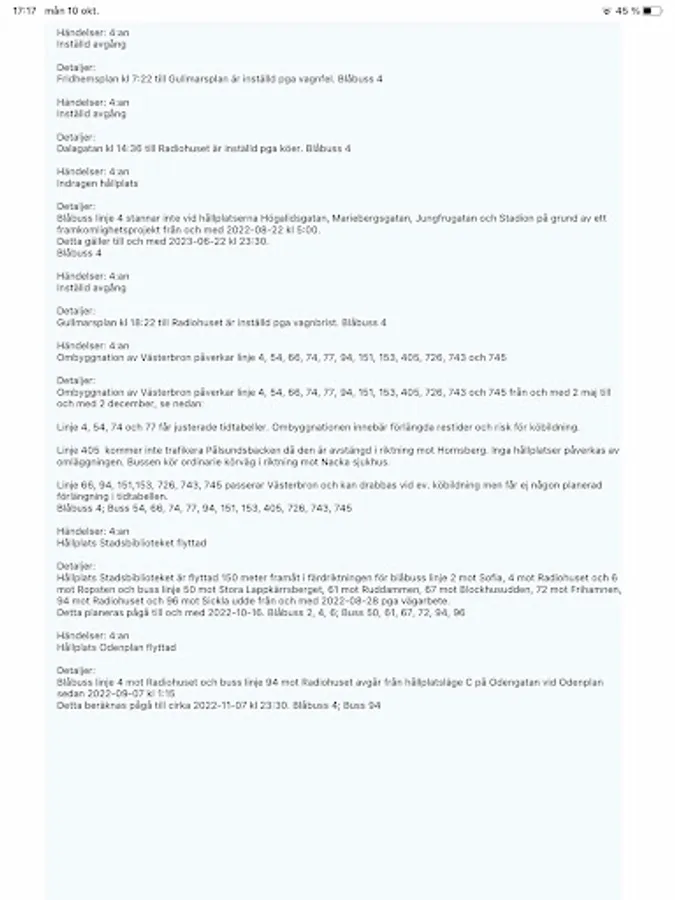 Everything is retrieved in real time from SL's own system so everything should be right and correct. However, the information presented by STRUL must always be seen as indicative. If you wanted to find out exactly how the lay is, you should always look at SL's own websites and in their apps.
